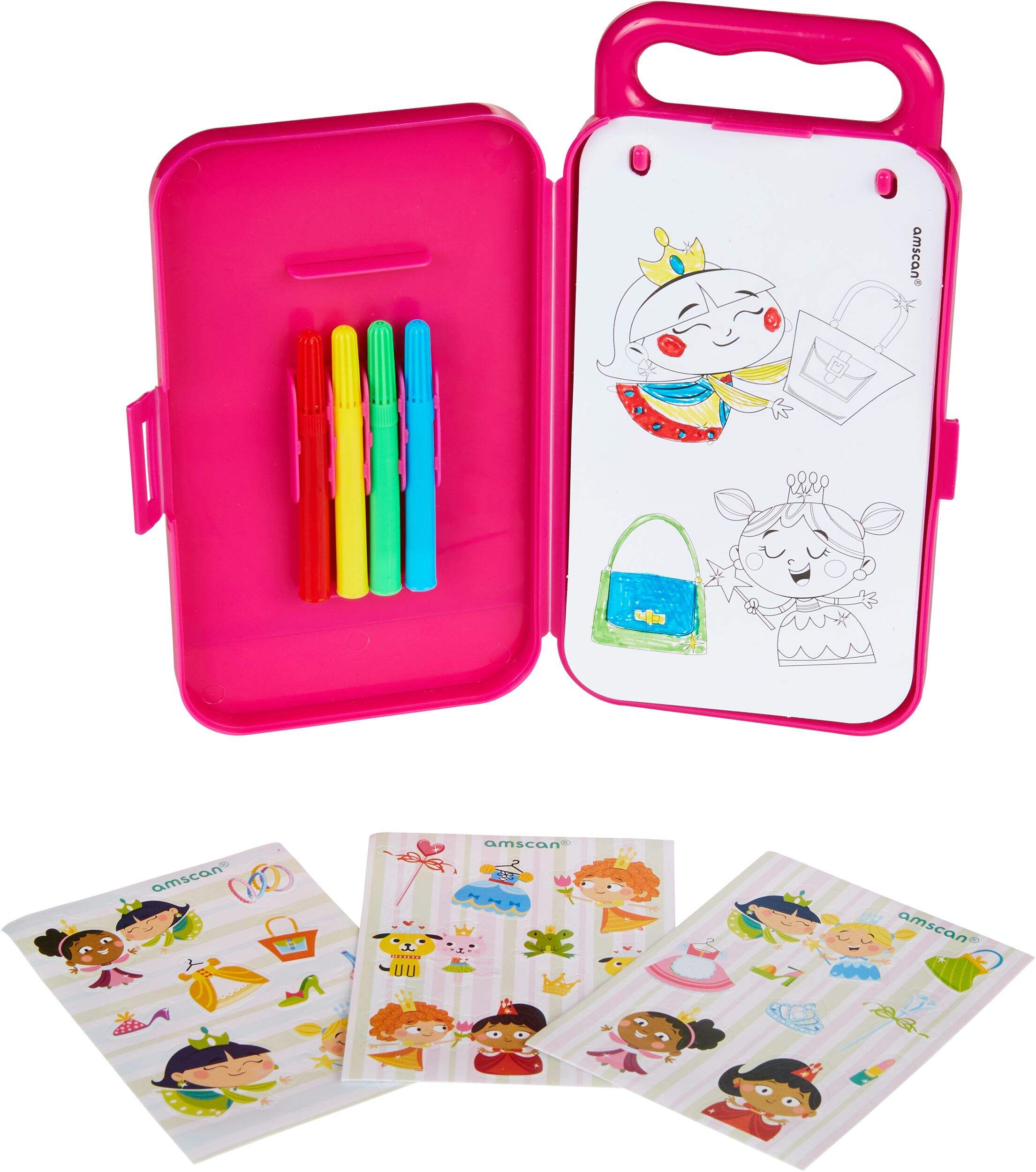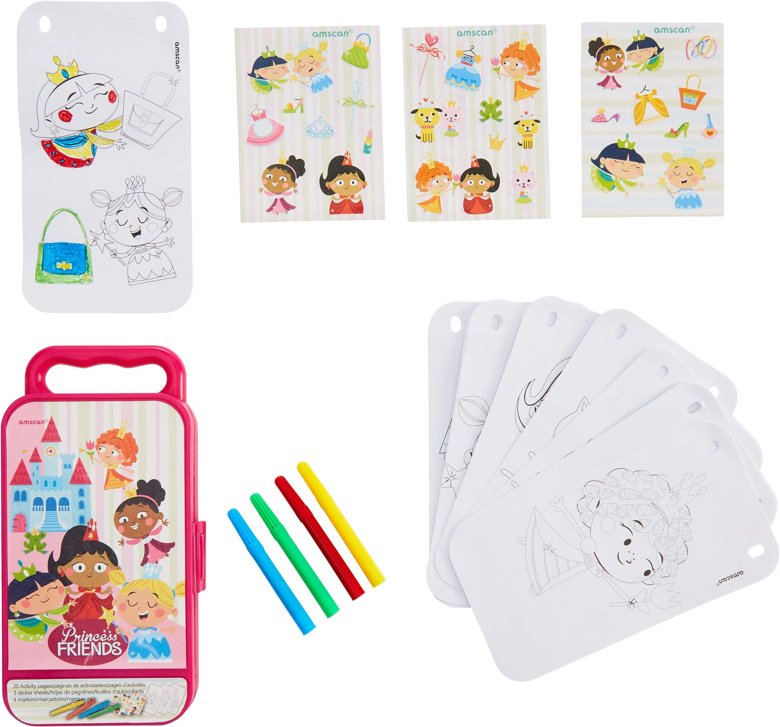 Comprend : 20 pages d'activités de 3 3/4 po la x 6 3/4 po H, 3 feuilles d'autocollants de 3 1/4 po la x 4 1/4 po H, 4 marqueurs de 3 po L et 1 boîte de 4 po la x 8 po H x 3/4 po P
