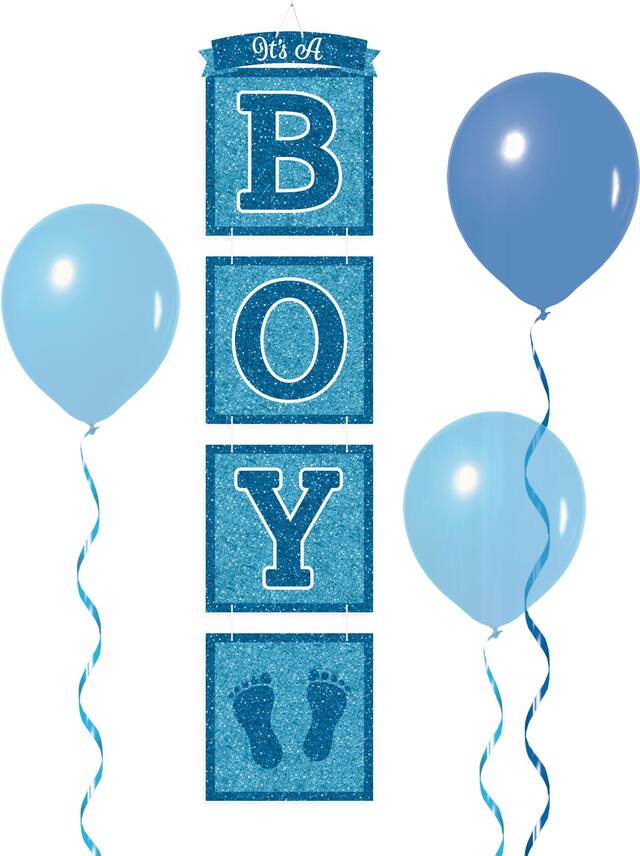Ces produits similaires présentés ci-dessous pourraient vous intéresser.Décorez une fête prénatale bleue avec cette affiche empilée scintillante It's a Boy dotée de grands carrés bleus brillants