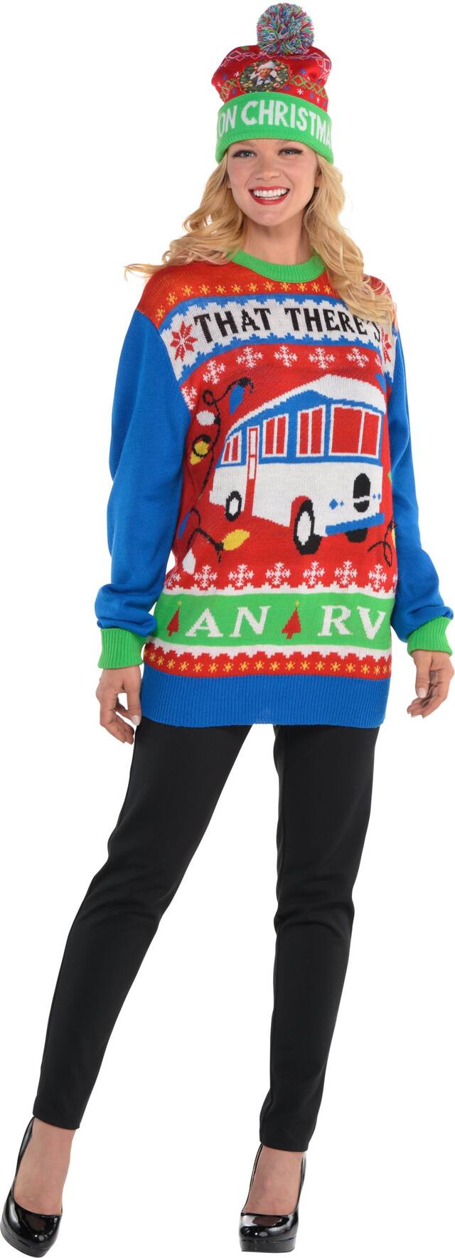 Ces produits similaires présentés ci-dessous pourraient vous intéresser.Affreux chandail vacances de Noël en VR, Le sapin à des boules est un chandail des Fêtes à col ras du cou avec un véhicule récréatif géant à l'avant avec des manches bleues et des détails rouges et verts