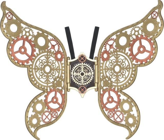 Ailes steampunk dotées d'un cadre doré bordant des engrenages cuivrés et dorés