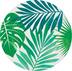 L'assiette en plastique est dotée d'un motif de feuilles de palmier vertes