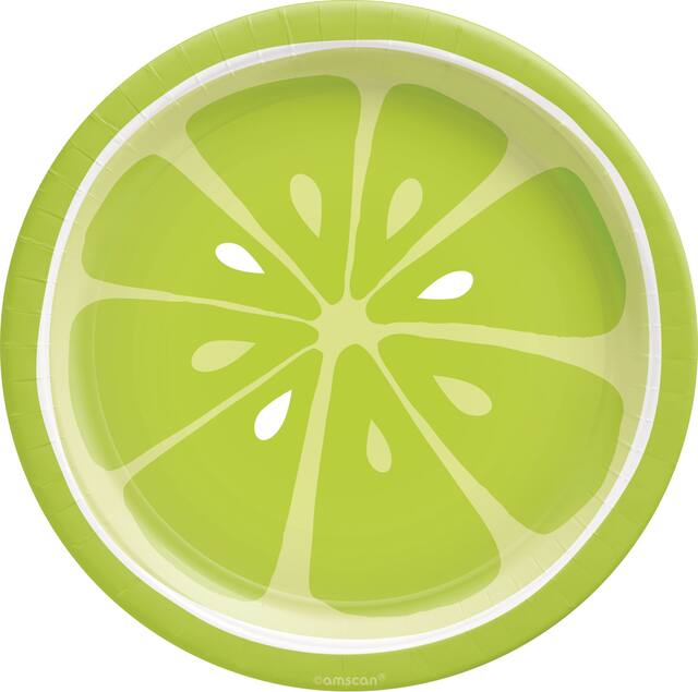 Chaque emballage contient un assortiment d'assiettes représentant des tranches de lime, de citron et d'orange