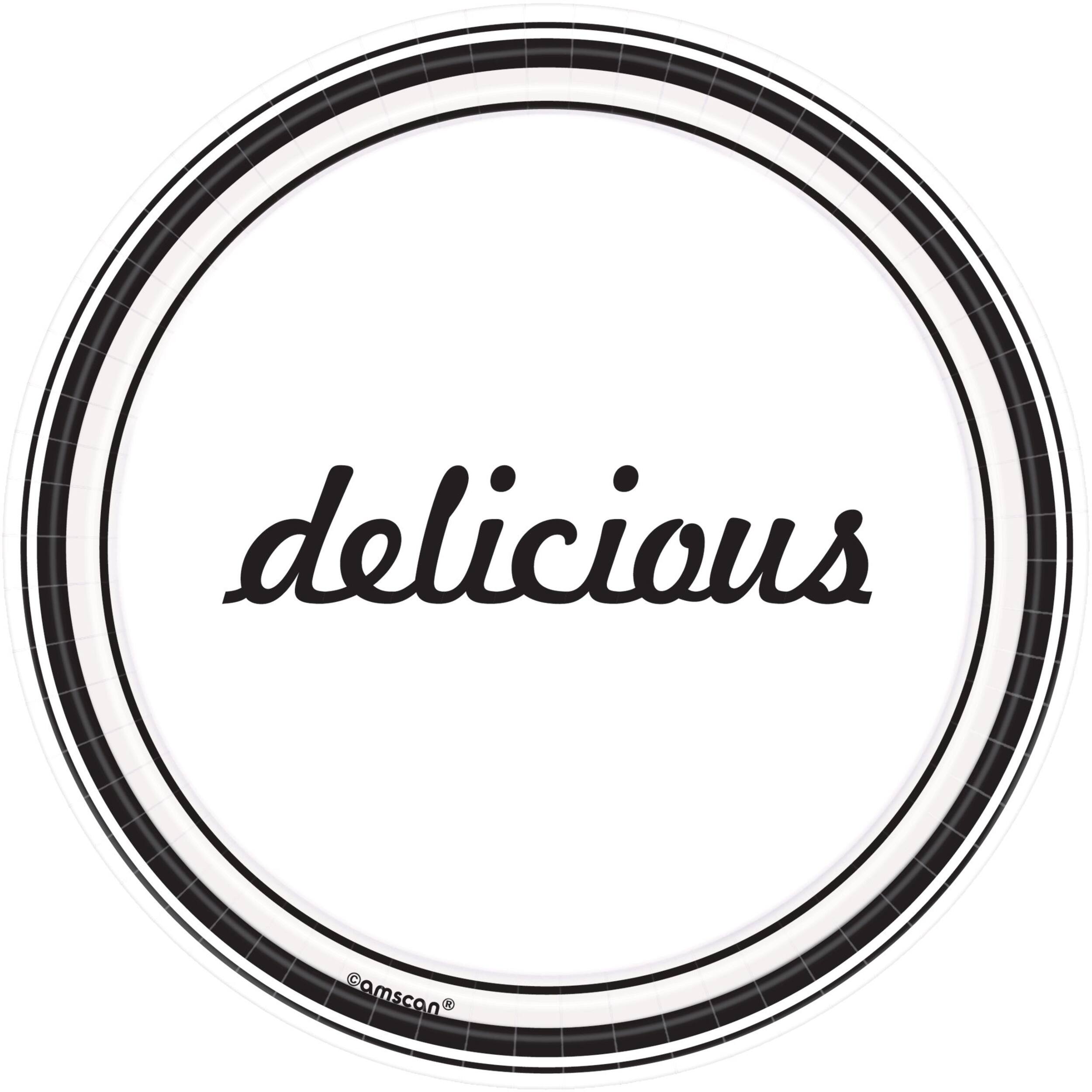 Ces produits similaires présentés ci-dessous pourraient vous intéresser.Assiettes à dessert Eat & Enjoy, blanches avec détails de bordure noirs et le titre « Delicious »