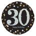 Assiettes à dessert étincelantes iridescentes Célébration 30e anniversaire avec un « 30 » accrocheur et une bordure de bulles dorées et argentées avec une finition iridescente