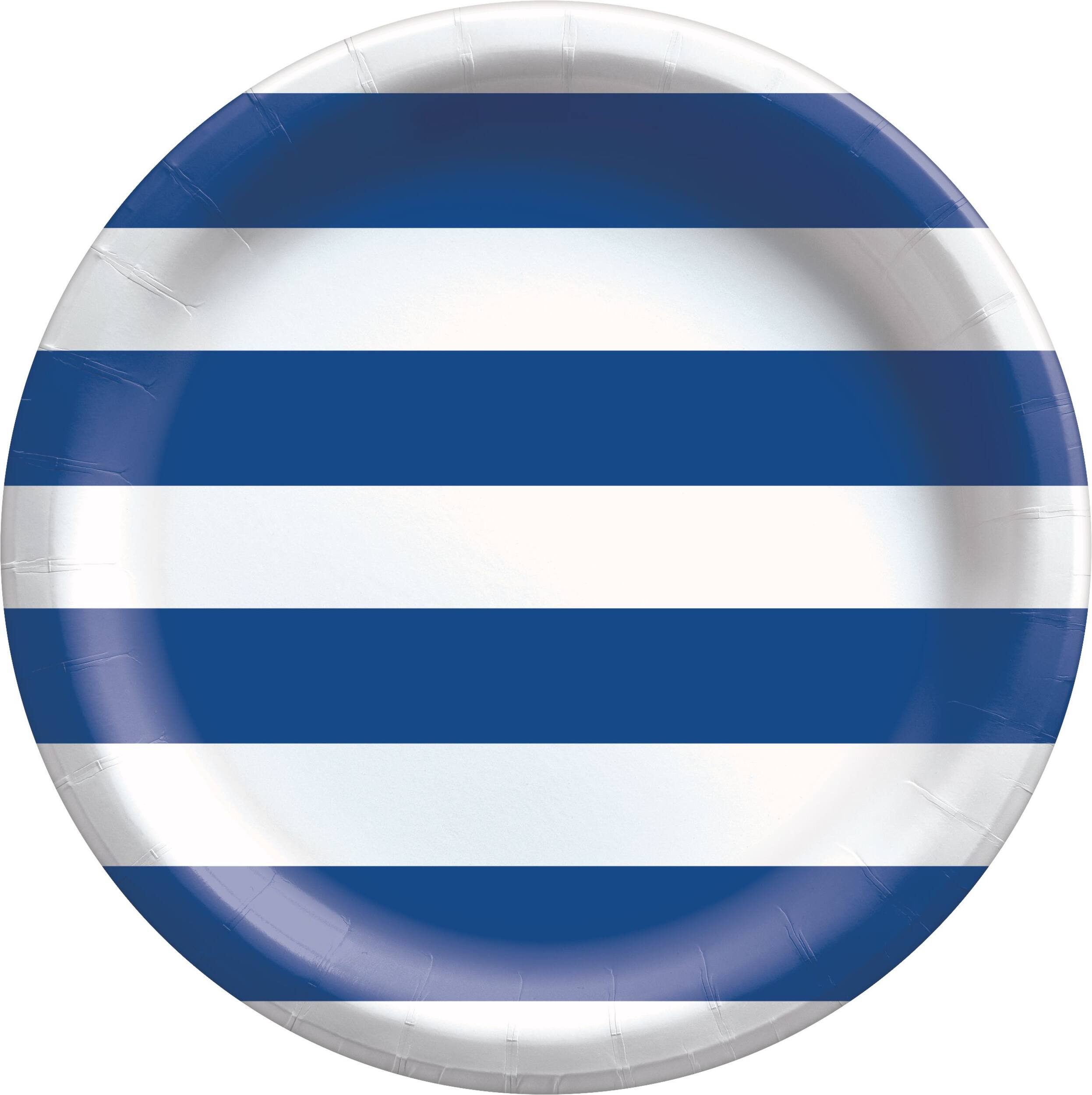 Chaque assiette est imprimée avec des rayures de couleur bleu royal et blanc