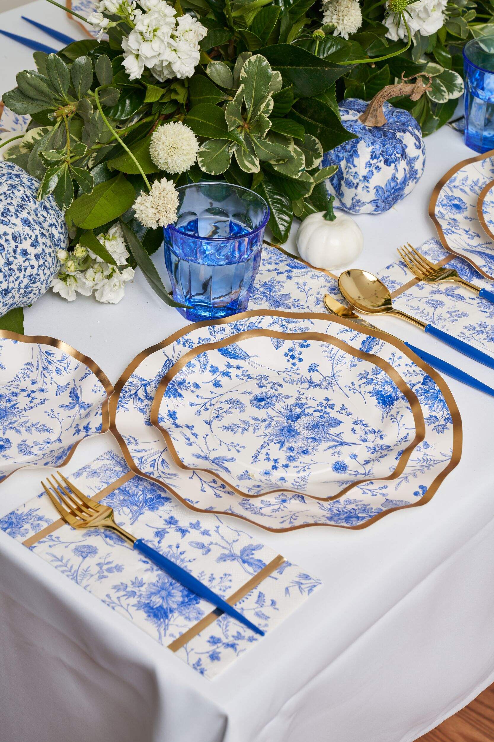 Assiettes à salade Sophistiplate Timeless dotées d’un élégant motif floral avec bordure dorée