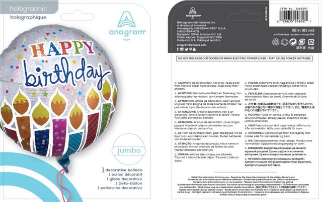 Ajoutez une touche amusante à n'importe quelle fête d'anniversaire avec le ballon d'anniversaire prismatique en aluminium avec motifs de bougies d'anniversaire sur un arrière-plan éclatant