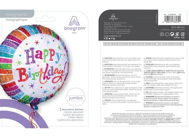 Faites la fête avec style avec le ballon en aluminium Radiant Happy Birthday d'Anagram International Inc. Ce ballon de 36 pouces présente une bordure en patchwork vibrante, mettant en valeur une palette de couleurs et de motifs prismatiques. Le message Happy Birthday est affiché des deux côtés pour une touche festive accrue. Le ballon est livré avec un gonflage à l'hélium et un ruban, mais il ne sera pas gonflé au moment de l'expédition ou de l'enlèvement. Il suffit de présenter votre ticket de caisse au magasin où vous l'avez acheté pour qu'il soit gonflé. Ce ballon, en aluminium autoscellant et réutilisable, consitue un ajout charmant à toute célébration d'anniversaire.