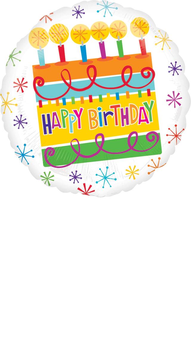 Ces produits similaires présentés ci-dessous pourraient vous intéresser.Ballon d'anniversaire gâteau coloré doté d'un gâteau attrayant aux couleurs vives, décoré de bougies illuminées et du message « Happy Birthday »