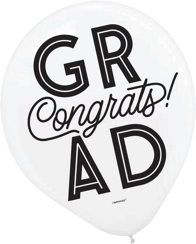 Ces produits similaires présentés ci-dessous pourraient vous intéresser.Ballons Remise de diplôme quadrillée noirs, argentés et blancs avec 3 motifs modernes de remise de diplômes