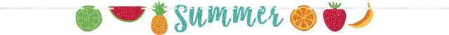 • Banderole à lettres Hello Summer scintillant avec des découpes en papier cartonné de fruits et de lettres qui épellent « Summer »