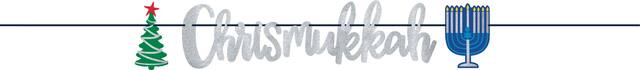 Banderoles à lettres comportant la mention « Merry Happy Chrismukkah » avec une découpe d'arbre de Noël, de ménorah et de l'étoile de David