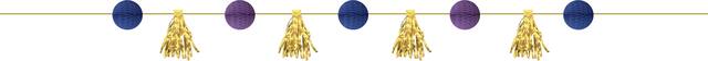 Comprend une mini banderole dotée de boules alvéolées bleues et violettes en alterné avec des pampilles dorées métalliques