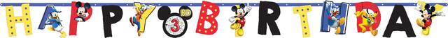 Ces produits similaires présentés ci-dessous pourraient vous intéresser.Banderole d'anniversaire Mickey Mouse comprenant des découpes de lettres qui épellent les mots « Happy Birthday » et décorées d'images de Mickey Mouse, de Donald Duck, de Dingo et de Pluto