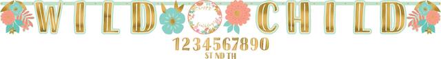 Lettres découpées imprimées dorées formant l'inscription « Wild Child »