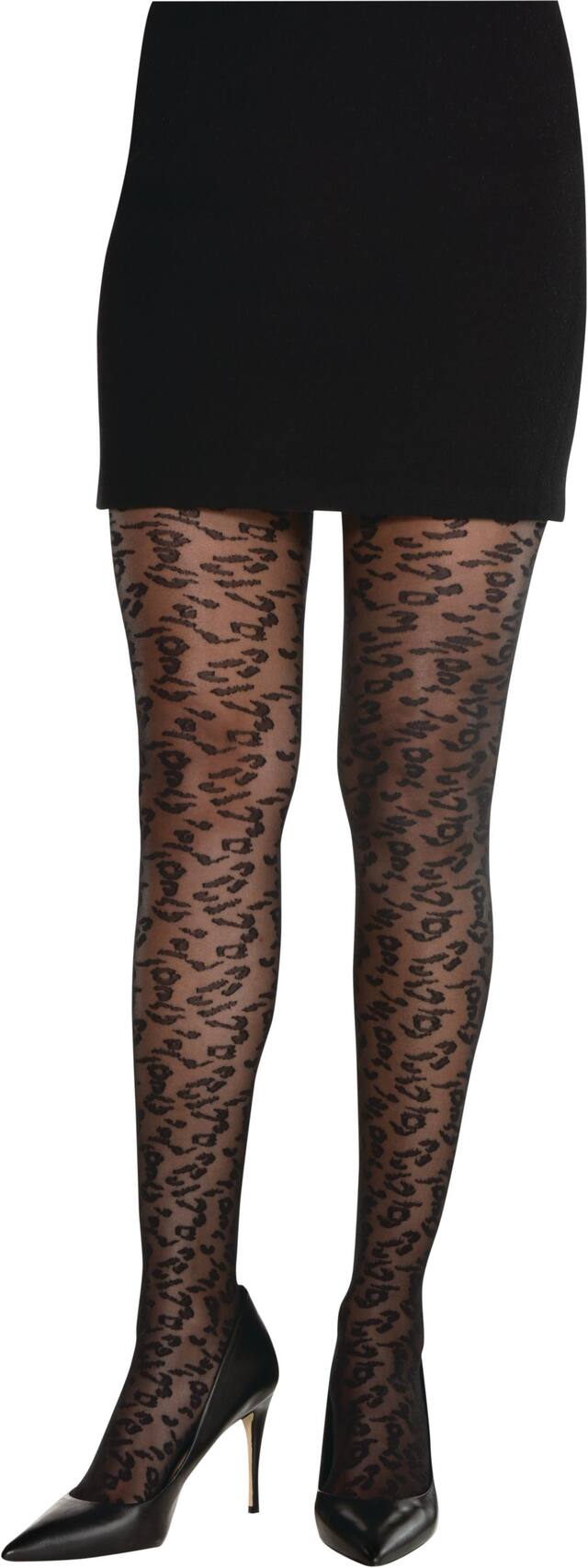 Bas noirs en nylon et en élasthanne dotés d'un imprimé de guépard qui vous feront ronronner de plaisir