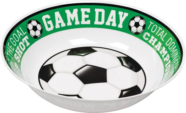 Ces produits similaires présentés ci-dessous pourraient vous intéresser.La fête ne commence pas avant l'arrivée de ce bol de service. Idéal pour servir des collations et des trempettes à toute l'équipe le jour de la partie. Le graphisme décoré sur la mélamine durable rend ce bol amusant pour les enfants comme pour les adultes. Remplissez-le de croustilles, de bretzels ou de légumes et vous serez prêt à encourager votre équipe tout en gardant vos gâteries à portée de main sans dégâts.