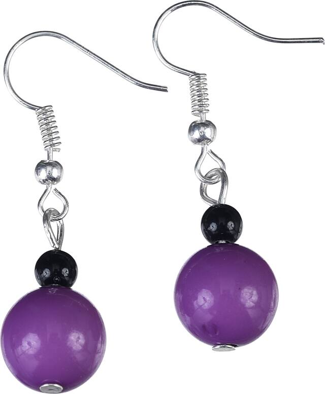 Comprend 2 boucles d'oreilles argentées en forme d'araignée avec pierres mauves, 2 boucles d'oreilles noires et mauves en forme de chapeau de sorcière et 2 boucles d'oreilles à perles mauves