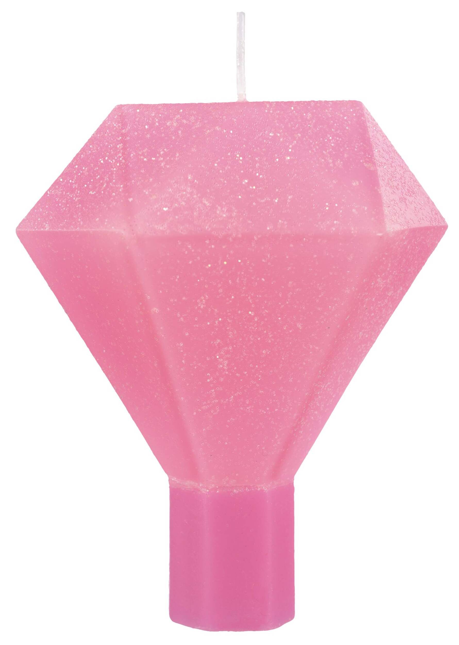 Bougie en cire qui ressemble à un diamant fraîchement découpé et qui présente un fini scintillant pour une touche d'éclat.