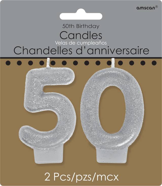 Célébrez cette étape importante avec les bougies d'anniversaire numéro 50, argent scintillant