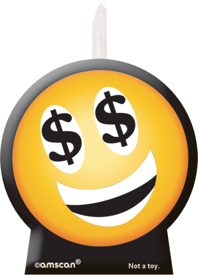 Bougies en forme d'émoticône aux yeux en forme de dollars, d'émoticône clin d'oeil et d'émoticône qui rit