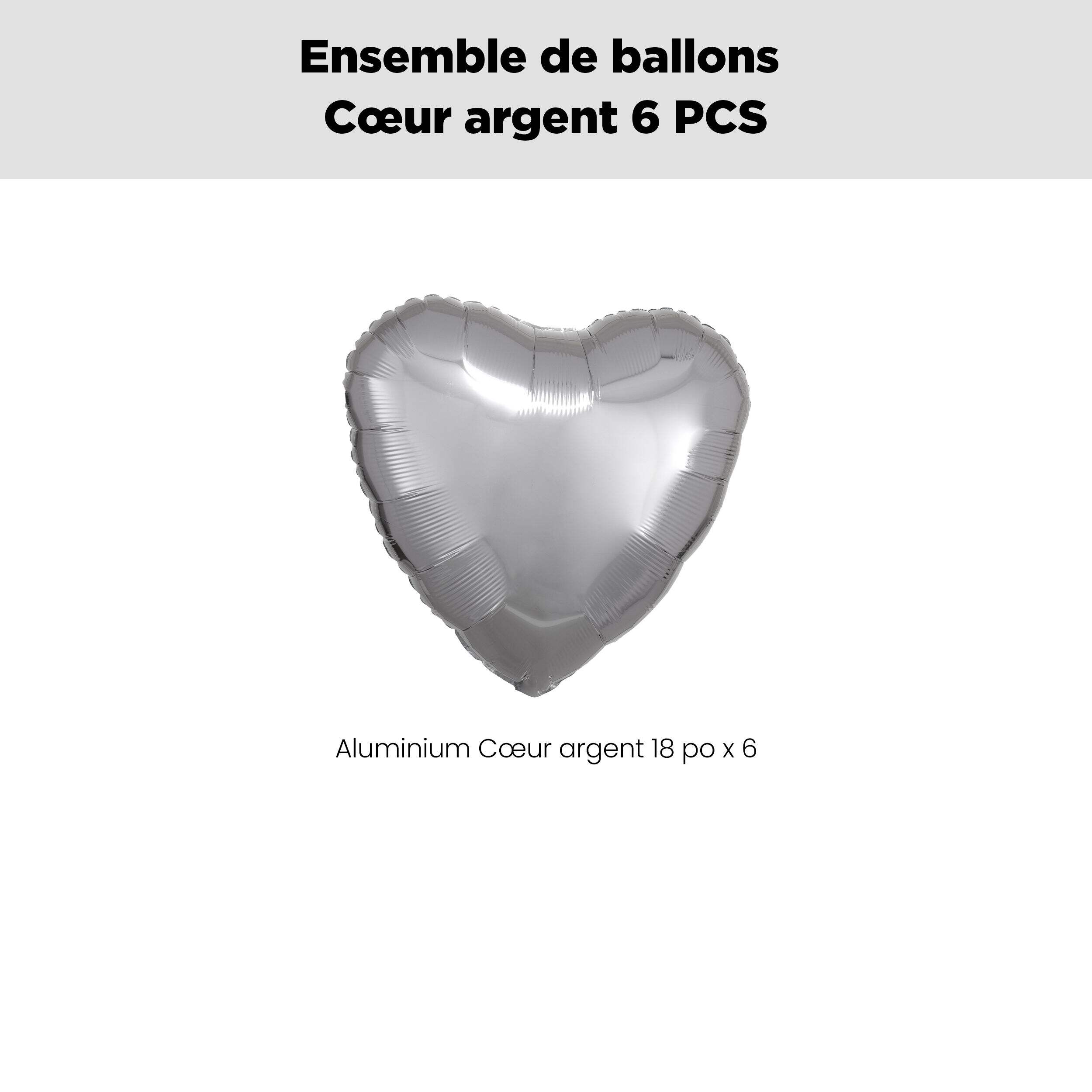 Contenu de l'ensemble: Ballons argentés en aluminium, cœur de 18 po (UGS 8423884), paq. 6
