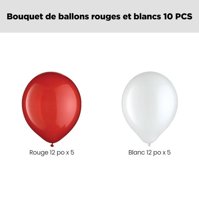 Cet ensemble comprend : 5 ballons en latex rouges de 12 po (8553389) et 5 ballons en latex blancs de 12 po (8421406)