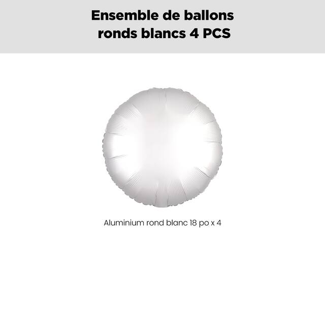 Contenu de l'ensemble: Ballons blancs en aluminium de forme ronde de 18 po (UGS 8432737), paq. 4