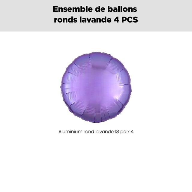 Contenu de l'ensemble: Ballons lavande en aluminium de forme ronde de 18 po (UGS 8432005), paq. 4