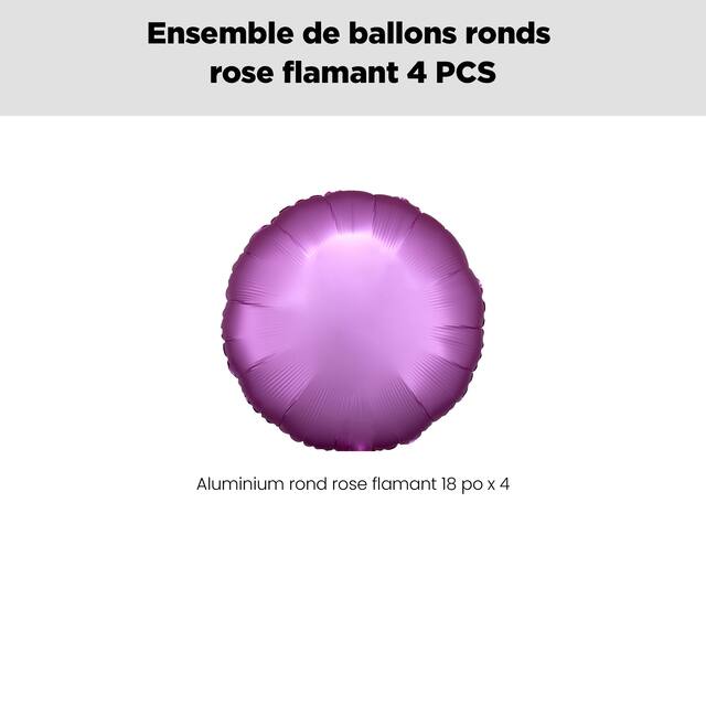Contenu de l'ensemble: Ballons rose flamant en aluminium de forme ronde de 18 po (UGS 8432610), paq. 4