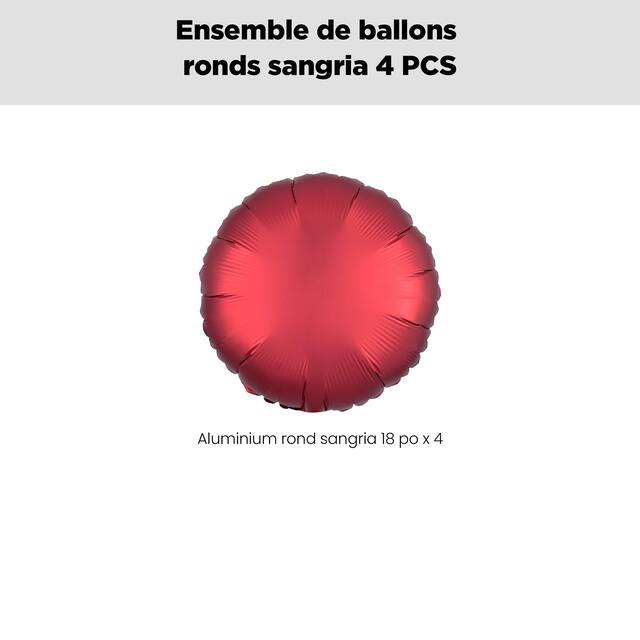 Contenu de l'ensemble: Ballons sangria en aluminium de forme ronde de 18 po (UGS 8432735), paq. 4