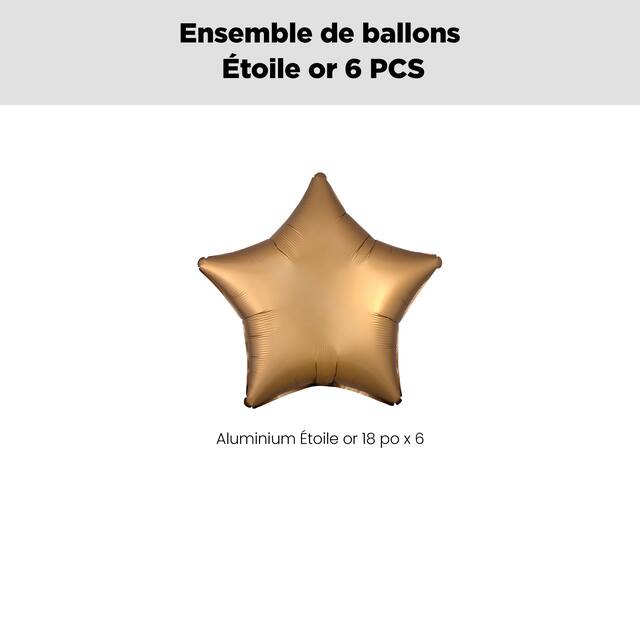 Contenu de l'ensemble: Ballons dorés en aluminium en forme d'étoile de 18 po (UCS 8424100), paq. 6