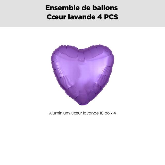 Contenu de l'ensemble: Ballons lavande en aluminium en forme de cœur de 18 po (UGS 8423917), paq. 4