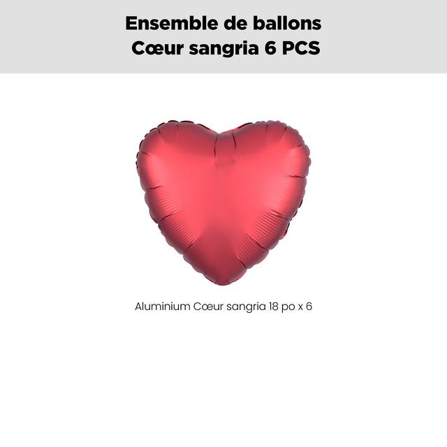 Contenu de l'ensemble: Ballons sangria en aluminium en forme de cœur de 18 po (UGS 8424164), paq. 6