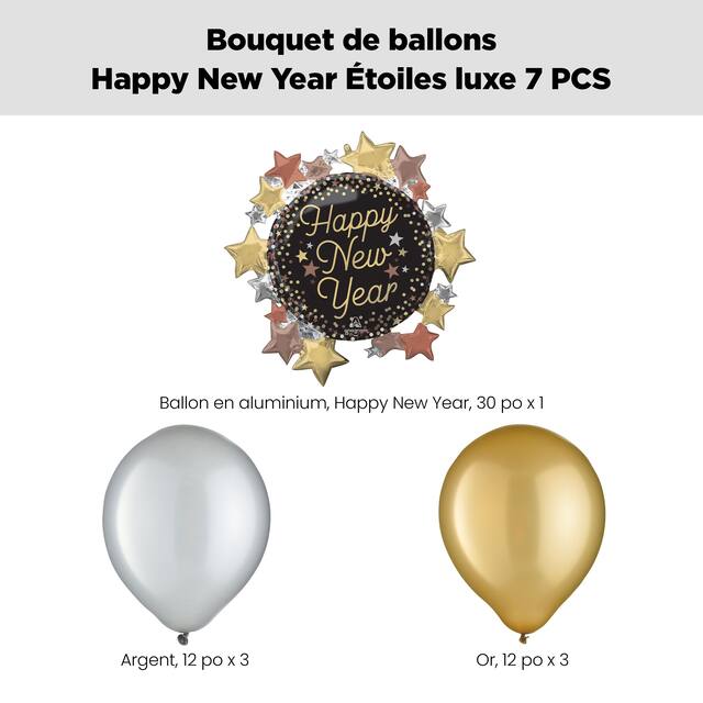 Brillez de mille feux à la veille du jour de l'An avec ce bouquet de ballons de forme extraordinaire Happy New Year de luxe avec étoiles de 30 po