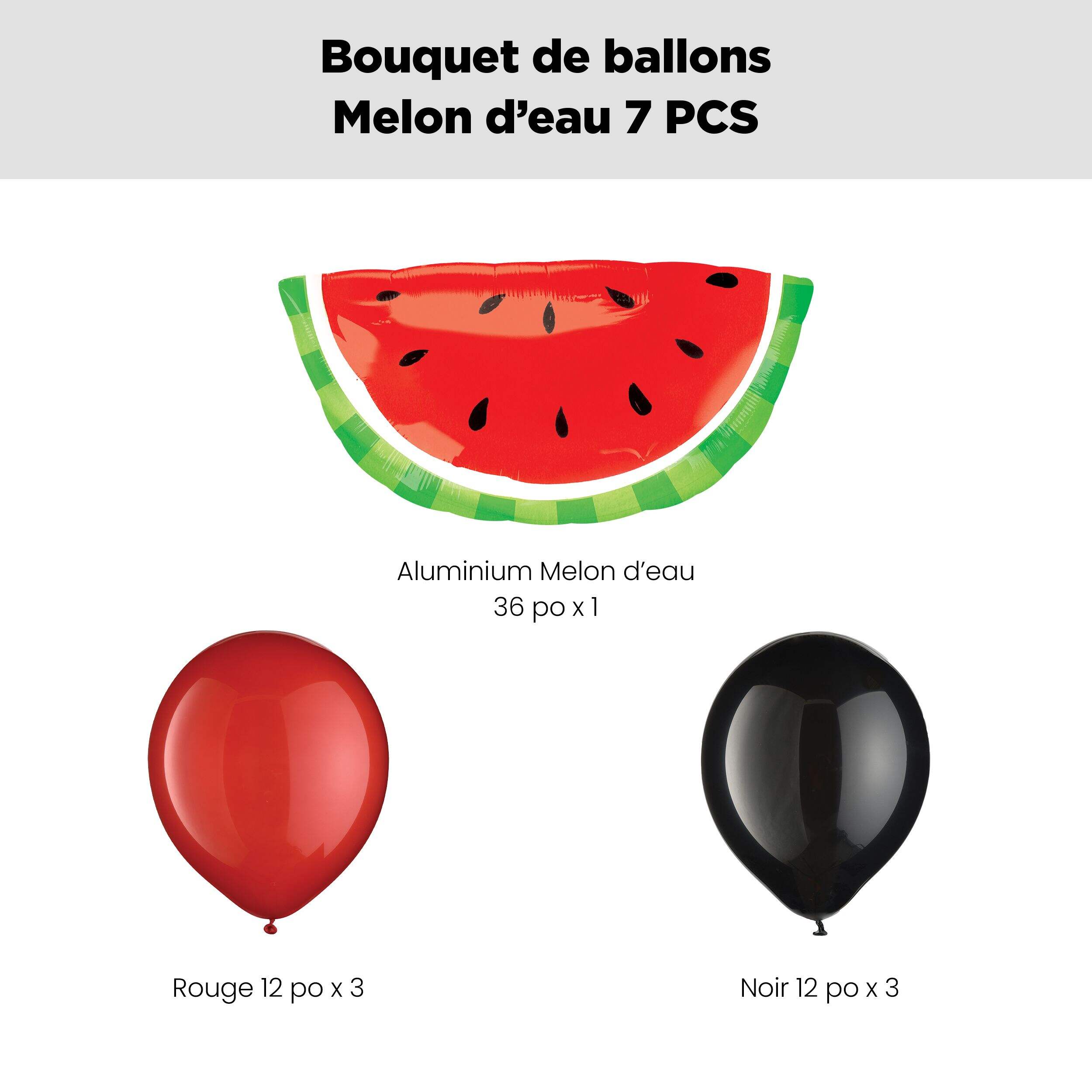 Ajoutez la douceur de l’été partout où vous allez grâce à ce bouquet de ballons fantaisiste melon d’eau. Ce bouquet de 7 pièces, qui comprend un ballon melon d’eau de forme extraordinaire de 36 po et des ballons en latex rouges et noirs de 12 po, apportera une ambiance fruitée à votre fête.