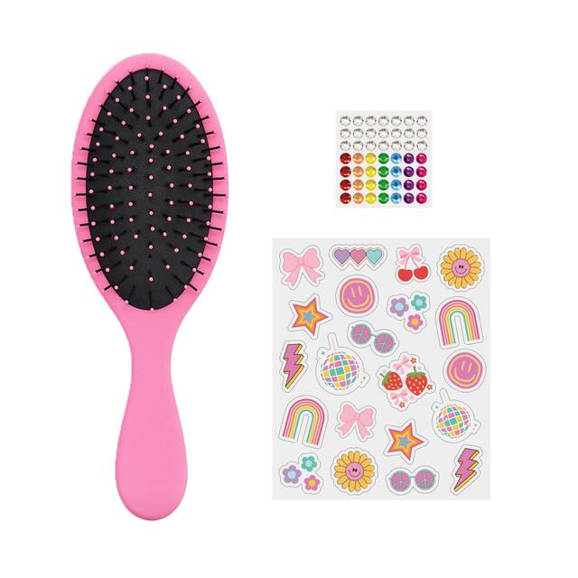 Comprend 1 brosse à cheveux (22 cm x 10 cm x 3 cm) avec des autocollants et des gemmes décoratives