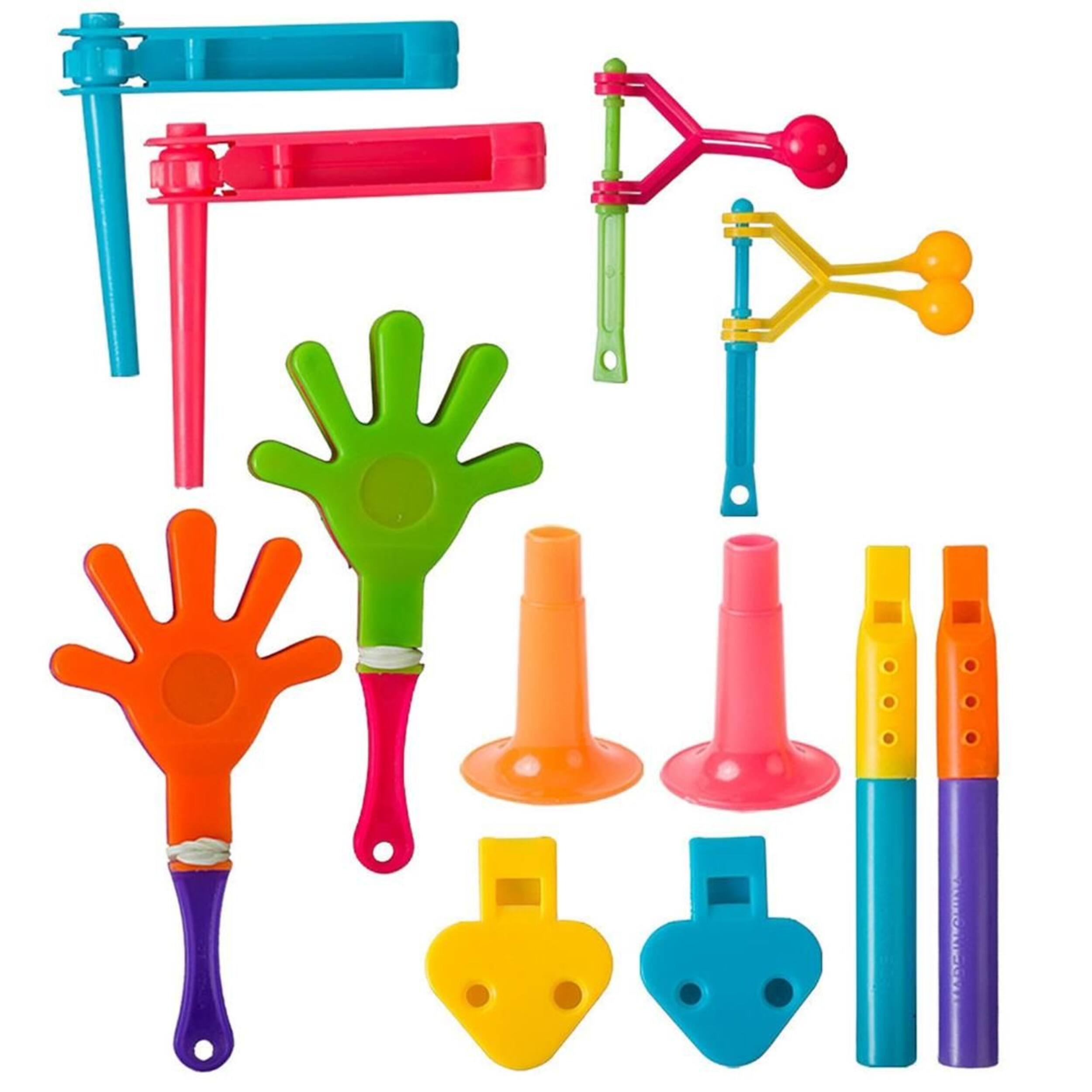 Bruiteur, paquet économique comprenant des bruiteurs en forme de main, des mirlitons, des mini-flûtes, des mini-klaxons et plus encore