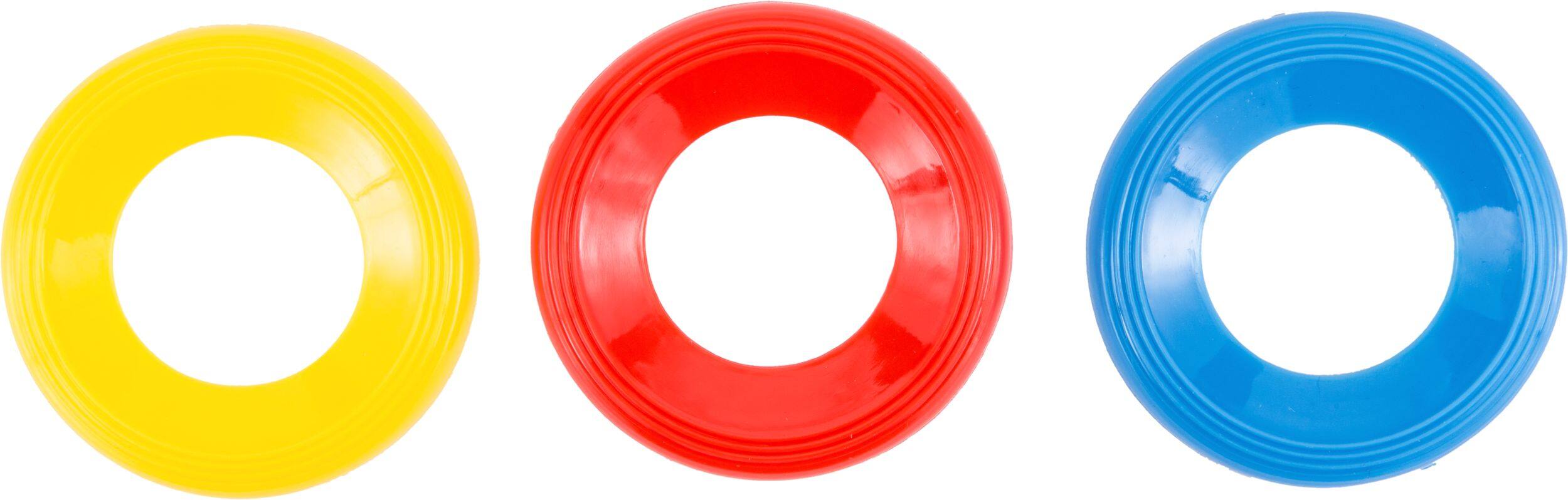 Comprend 20 disques volants : 2 1/4 po D, 20 sifflets : 3/4 po D x 2 po L, 20 balles en laine : 1 po D, 20 hélicoptères tournoyants : 1 po la x 7 1/4 po L, et 20 montres casse-tête : 2 po D