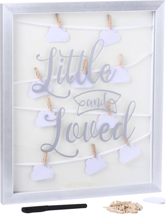 Cadre Little & Loved avec une bordure en métal argenté et le titre argenté « Little and Loved » sur la couverture en verre