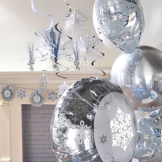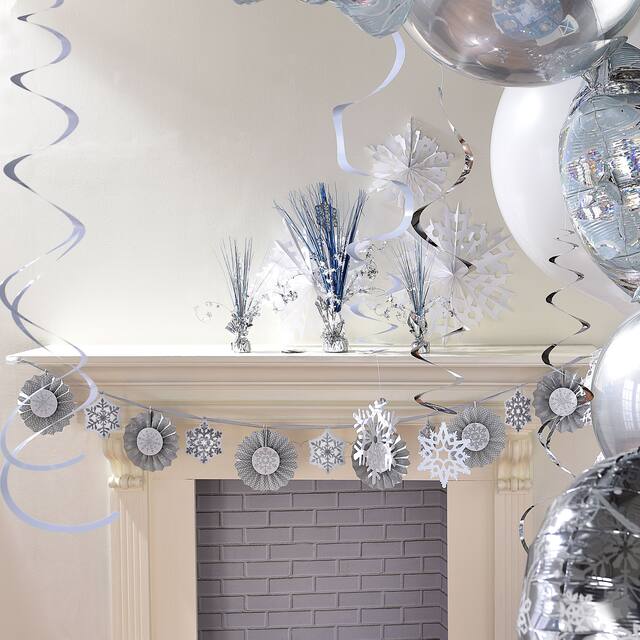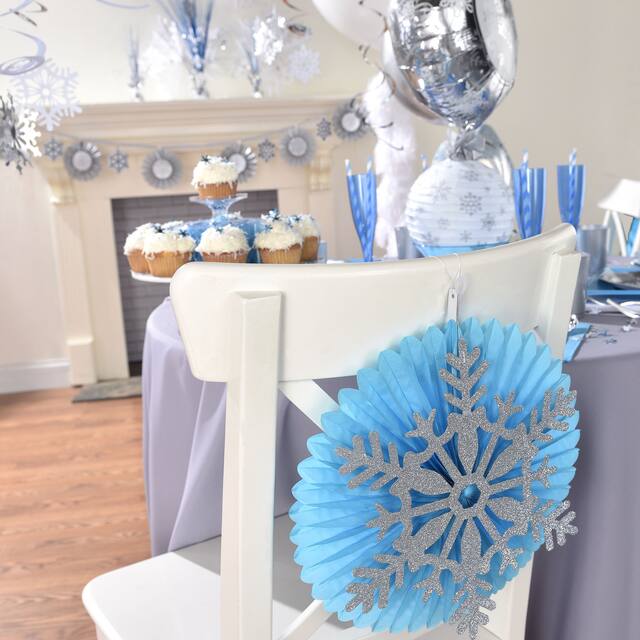 Fontaine de papier d’aluminium bleu glacial argenté en forme de glaçon avec des découpes de flocons de neige