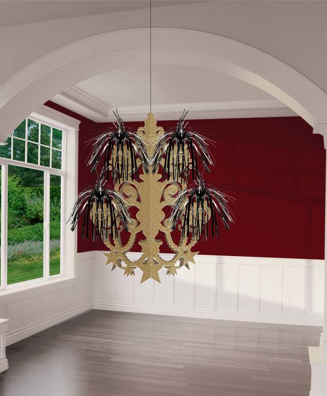 Utilisez ce lustre doré décoratif pour agrémenter votre fête hollywoodienne, une soirée cinéma chic ou un événement sur le thème des années 1920