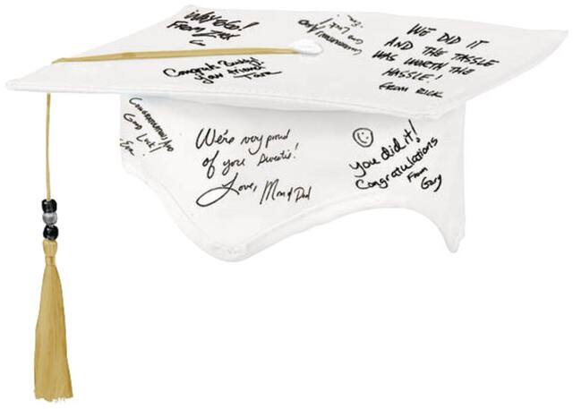 Ces produits similaires présentés ci-dessous pourraient vous intéresser.Chapeau d'autographes du diplômé avec stylo dont le tissu est blanc qui comprend un chapeau de diplômé avec une pampille dorée fixée