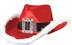 Chapeau de cowboy rouge avec bordure blanche et boucle dorée pour ressembler au chapeau du père Noël