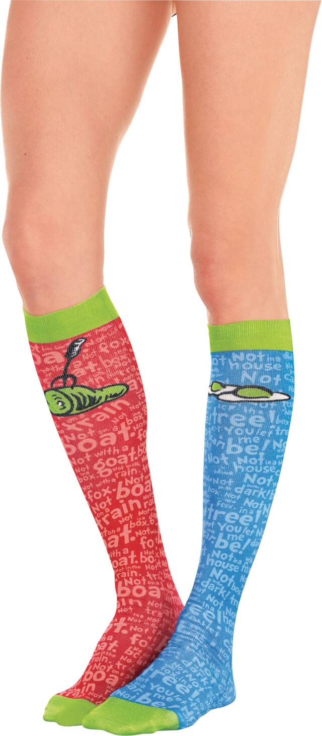 Ces produits similaires présentés ci-dessous pourraient vous intéresser.Chaussettes au genou Les oeufs verts au jambon de Dr. Seuss pour adultes montrant votre amour de la lecture