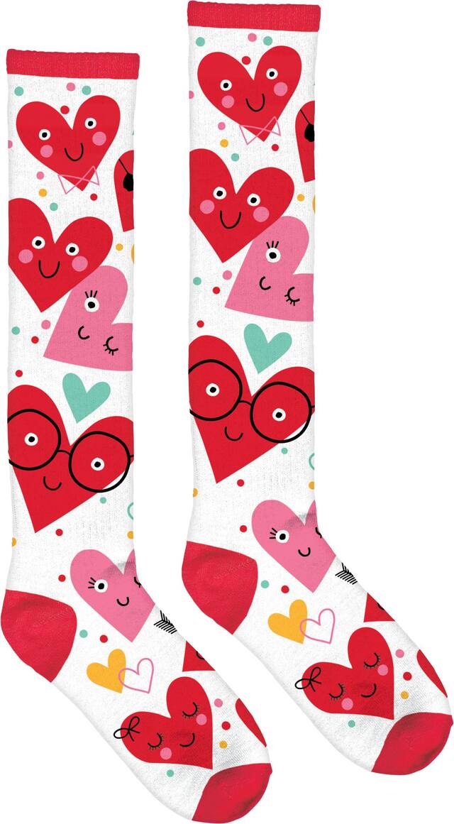 Chaussettes blanches recouvertes d'adorables personnages en forme de coeur et de points colorés