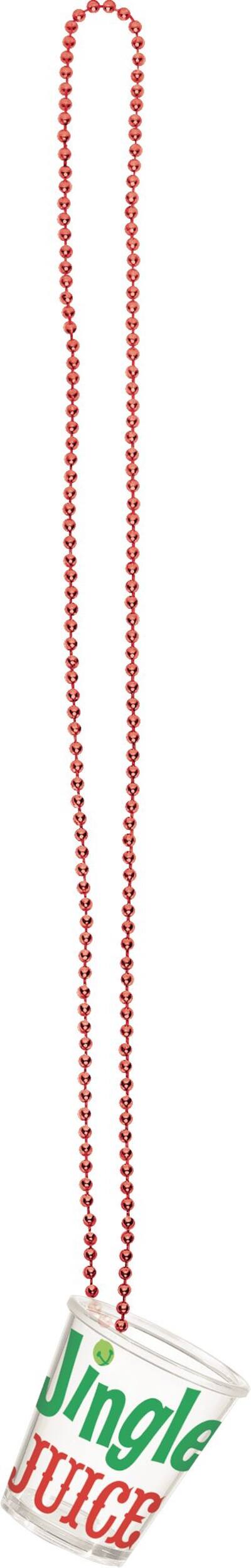 Chaque verre à liqueur de taille standard est fixé à un collier de perles rouges