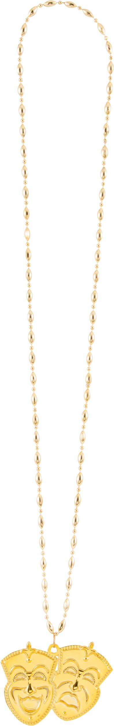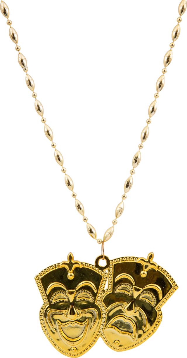 Masques de comédie et de tragédie côte à côte au bout du pendentif qui complètent votre allure royale