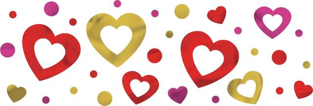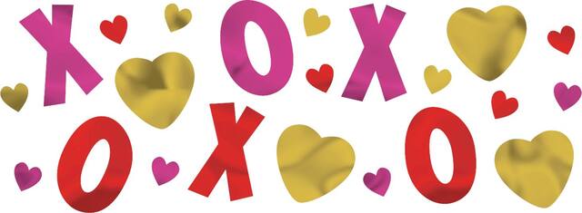 Comprend des coeurs, des pois, des « X » et des « O » de couleur or, rose et rouge avec un fini brillant