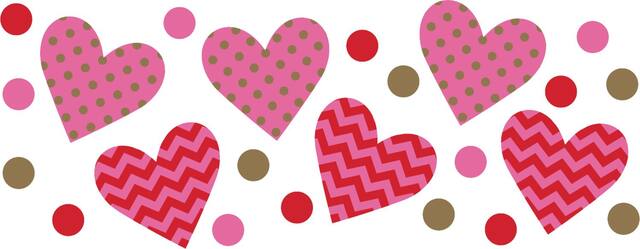 Découpes en papier cartonné comprenant des coeurs à motifs de pois et de chevrons